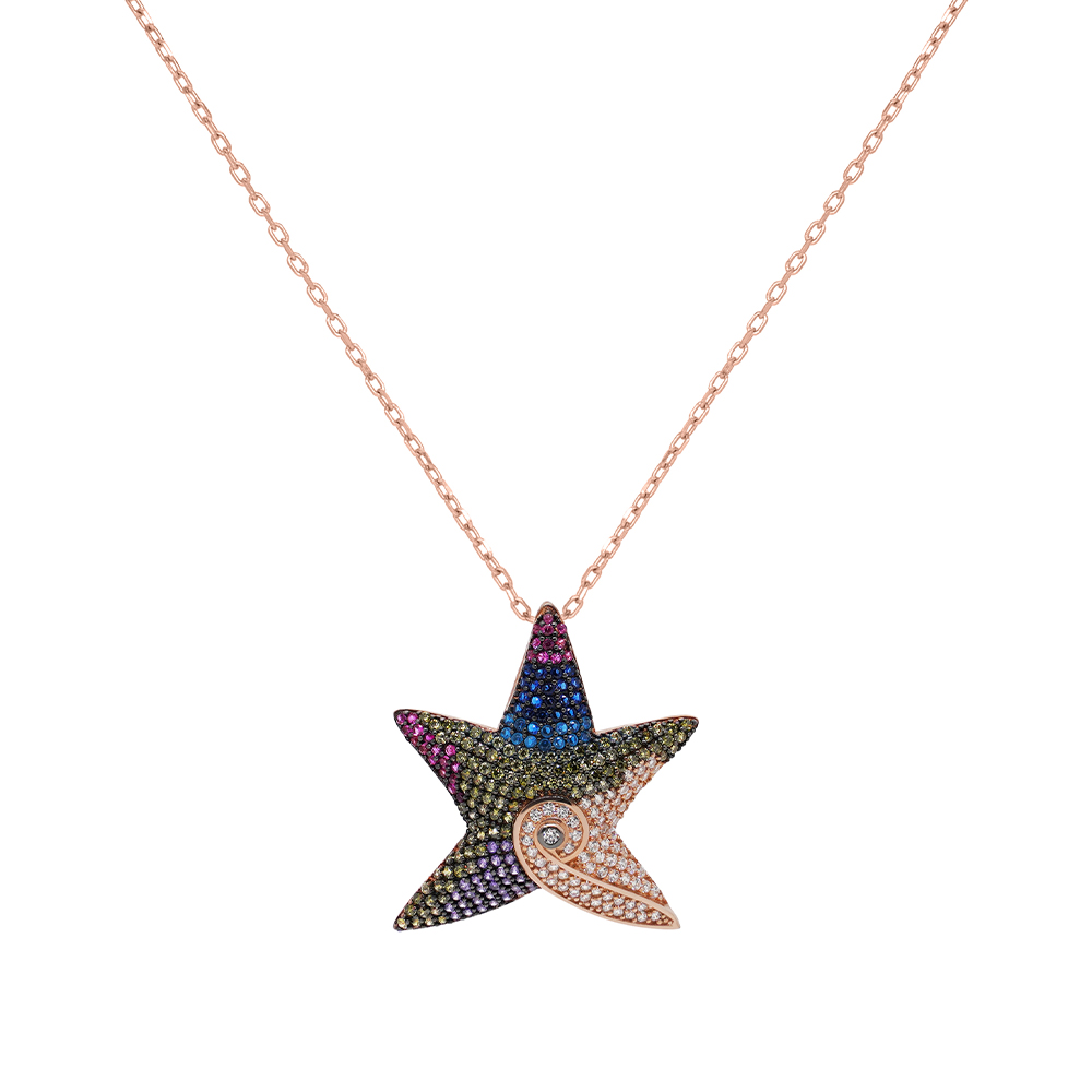 mixed zircon stone multicolored star necklace